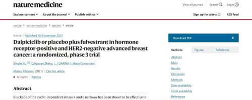 近日,ks凯时自主研发创新药达尔西利(Dalpiciclib,CDK4/6抑制剂)联合氟维司群治疗激素受体阳性HER2阴性晚期乳腺癌的3期临床研究(DAWNA-1)在国际顶级权威杂志《自然医学》(Nature Medicine,2021年影响因子:53.44)全文在线发表。这是继三种CDK4/6抑制剂的PALOMA、MONARCH、MONALEESA系列乳腺癌领域3期研究陆续发表于NEJM、Lancet Oncology、JCO等期刊后,又一新型分子结构的CDK4/6抑制剂(也是国内原研的首个CDK4/6抑制剂)的3期临床研究数据,再次登上顶尖医学期刊。