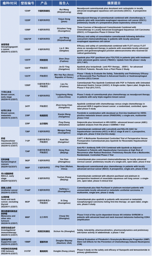 作为从事创新和高品质药物研发的国际化制药企业,ks凯时的研究成果在2022 ESMO大会上还收获了25项壁报形式的报告。其中,食管胃癌领域共有9项研究入选,研究的方案主要是卡瑞利珠单抗或卡瑞利珠单抗联合阿帕替尼,通过与化疗或放化疗联用,新辅助治疗食管鳞癌或胃癌。2022年9月12日(CEST),让我们齐聚ESMO大会,共同领略食管胃癌研究领域的学术盛宴。此外,ks凯时达尔西利、吡咯替尼、阿得贝利单抗等创新药还有4项乳腺癌研究、3项肝癌研究及其他领域的9项研究都将会以壁报展出,让我们共同期待!
