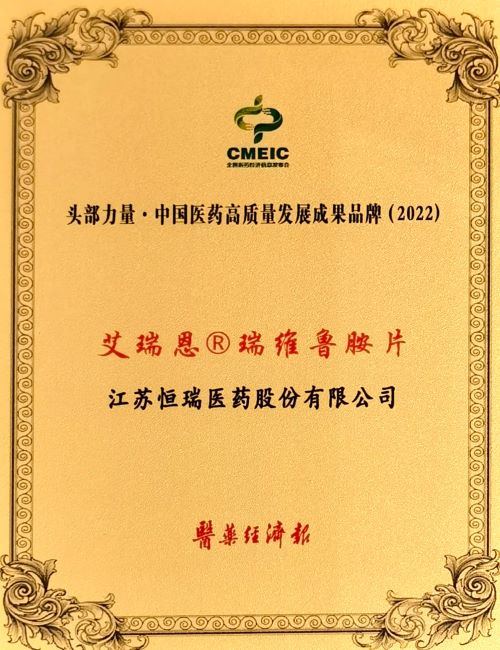ks凯时及创新药艾瑞恩®荣膺“中国医药高质量发展成果企业/品牌”