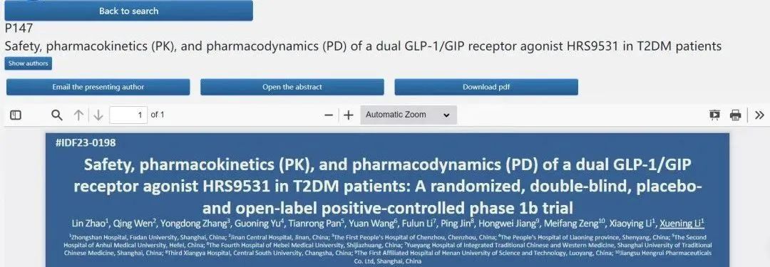 2023 IDF︱恒瑞创新药、GLP-1/GIP双受体激动剂HRS9531治疗糖尿病Ib期研究成果精彩亮相