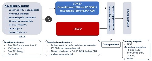 1.Gao-Jun Teng, et al. Transarterial chemoembolization (TACE) combined with camrelizumab and rivoceranib versus TACE alone in the treatment of unresectable hepatocellular carcinoma: a multicenter, open-label, randomized, phase 2 study (CARES005).2025 ASCO GI LBA522.
