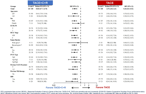 图3. 关键亚组中根据RECICL评估的PFS