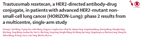 2025年2月25日,由上海交通大学附属胸科医院陆舜教授以及李子明教授团队牵头开展的HORIZON-Lung研究II期阶段主要结果发表于国际肿瘤学领域顶级期刊《柳叶刀·肿瘤学》《The Lancet Oncology》(IF:41.6)[1]。该研究结果显示,瑞康曲妥珠单抗(研发代号:SHR-A1811)单药用于既往经治HER2突变晚期非小细胞肺癌患者,表现出了令人鼓舞的抗肿瘤疗效及良好的安全性。