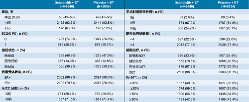 与安慰剂联合内分泌治疗(ET)相比,达尔西利(Dalp)联合ET显著延长了无浸润性疾病生存期(iDFS)(HR 0.56,95% CI 0.43–0.71;单侧P<0.0001),且在2年时带来4.5%的绝对iDFS获益。达尔西利带来的iDFS获益在各分层因素和其他基线亚组中总体一致。无病生存期(DFS)和无远处病生存期(DDFS)也显示达尔西利联合ET优于安慰剂联合ET。安全性方面,达尔西利安全性整体可控。