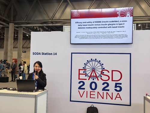 中欧夏令时间(CEST)2025年9月15至19日,第61届欧洲糖尿病研究协会(EASD)年会在奥地利维也纳举办。期间,ks凯时自主研发的新型长效胰岛素类似物舒地胰岛素(INS068)治疗成人2型糖尿病(T2DM)患者的两项关键III期临床试验(INS068-301和INS068-302)分别以简单口头报告形式精彩亮相。