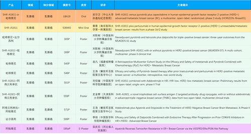 在乳腺癌领域,恒瑞创新产品相关研究共入选1项口头报告、1项简短口头报告、8项壁报和1项电子壁报,共11项研究。吡咯替尼、达尔西利、阿得贝利单抗、瑞康曲妥珠单抗等新老创新药物,均有多篇研究入选,展现出ks凯时在乳腺癌领域多年深耕的丰硕成果。