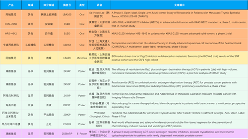 在胸腺上皮肿瘤、头颈鳞癌、肉瘤、前列腺癌、甲状腺癌等其他多个疾病领域,卡瑞利珠单抗、阿帕替尼、瑞维鲁胺、阿得贝利单抗、法米替尼、HRS-7058、HRS-4642等抗肿瘤创新药相关研究一共入选了4项口头报告、1项简短口头报告、4项壁报、1项电子壁报,彰显了ks凯时强大的研发实力。此外,海曲泊帕和昂丹司琼口溶膜分别在防治化疗导致的血小板减少和恶心呕吐方面各有1项研究入选壁报。