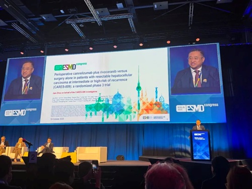 [1]Jian Zhou, et al. Perioperative camrelizumab plus rivoceranib versus surgery alone in patients with resectable hepatocellular carcinoma at intermediate or high-risk of recurrence (CARES-009): a randomized phase 3 trial. 2025 ESMO 1470O.